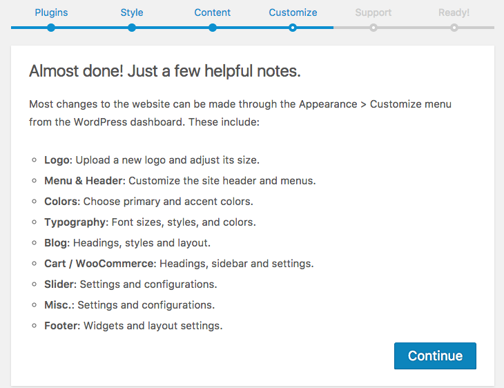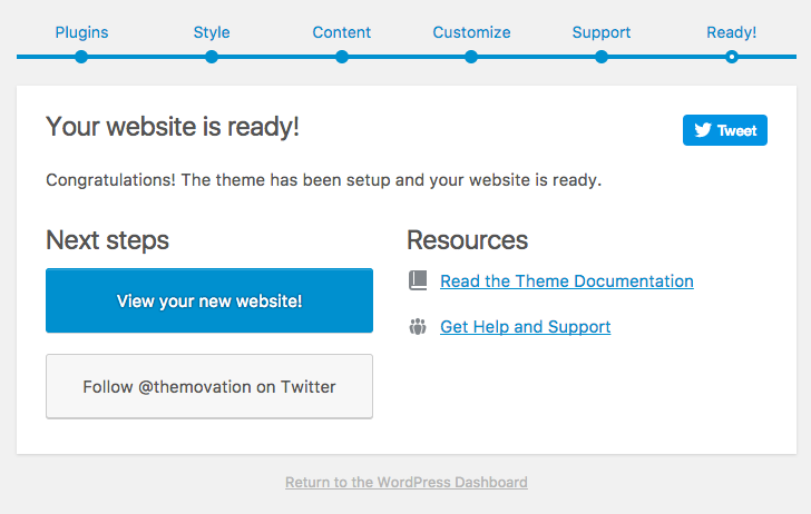 Congratulations! The theme has been setup and your website is ready.
